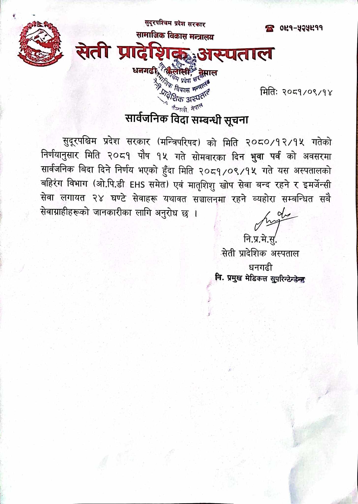 सरसफाई र कार्यालय सहयोगी सेवा करारमा लिने प्रस्ताव आह्वान सम्बन्धी सूचना