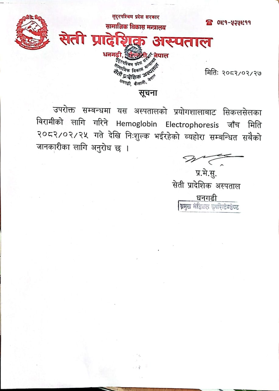 हिस्टोप्याथोलोजी ल्याब सञ्चालन हुने सम्बन्धी सूचना