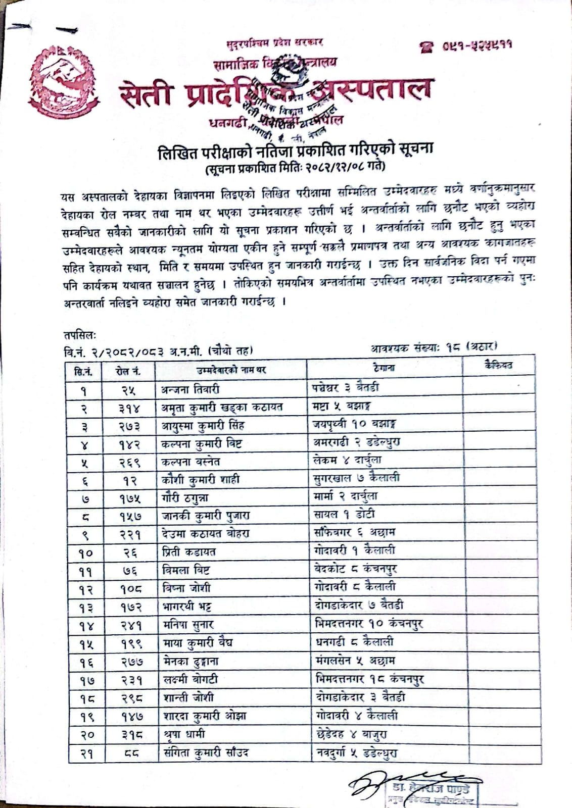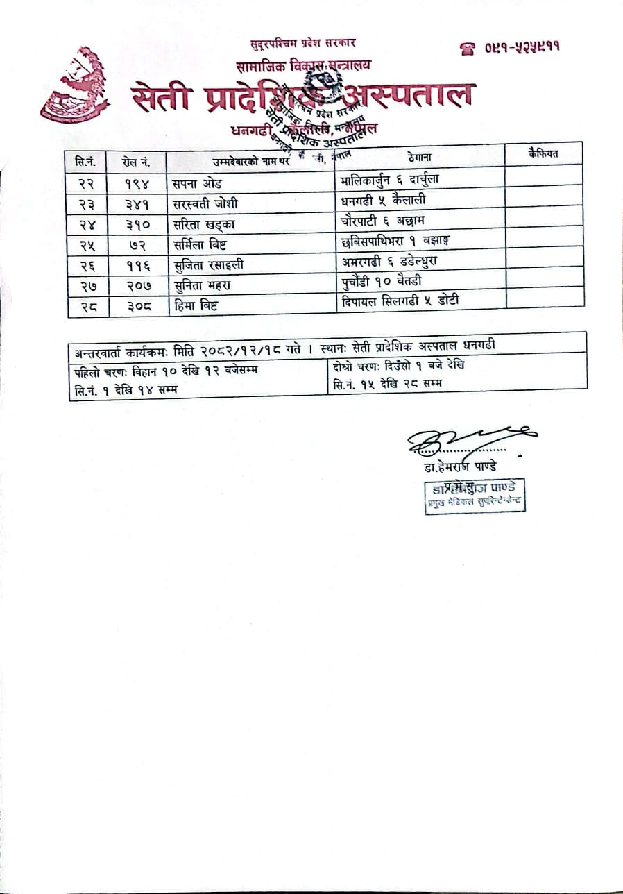 विभिन्न पदहरूको अन्तरवार्ता परीक्षाको नतिजा प्रकाशन